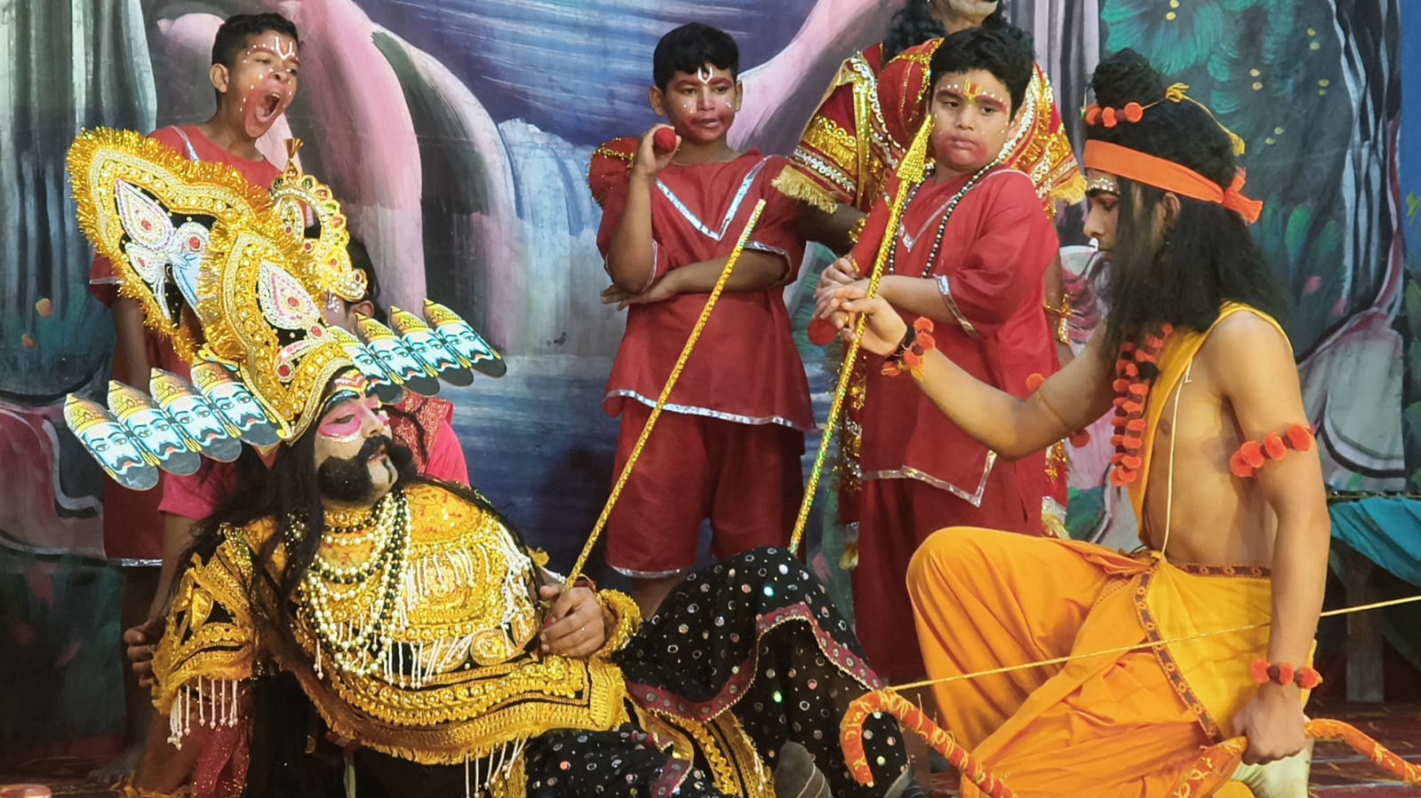 फोटो। शांतिपुरी मे रामलीला मंचन मे भगवान श्रीराम का राज्यभिषेक का सुन्दर दृश्य