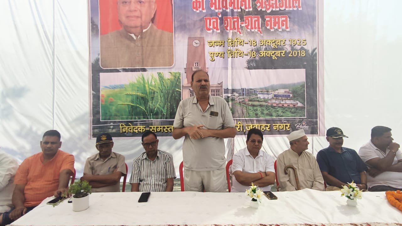 शांतिपुरी। दलगत राजनीति से उपर उठकर जनता का विकास करने वाले विकासपुरुष पूर्व मुख्यमंत्री व स्वतंत्रता सेनानी स्व० पं नारायण दत्त तिवारी के शताब्दी वर्ष (100 वर्ष) पूरे होने पर क्षेत्रीय ग्रामीणो में मिलकर क्षेत्र के ग्राम न०२ में प्रदेश कांग्रेस किसान उपाध्यक्ष एड. राजेंद्र शर्मा के निवास पर पूर्व होम्योपैंथिक अधिकारी डॉ बीड़ी जोशी की अध्यक्षता में उनके चित्र पर पुष्प अर्पित कर श्रद्धांजलि दी।