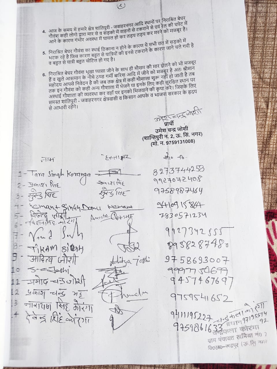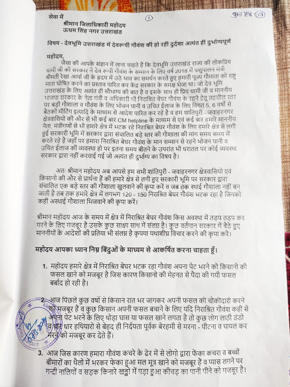 - स्थाई गौशाला है बनने तक अस्थाई व्यवस्था करने की कि मांग